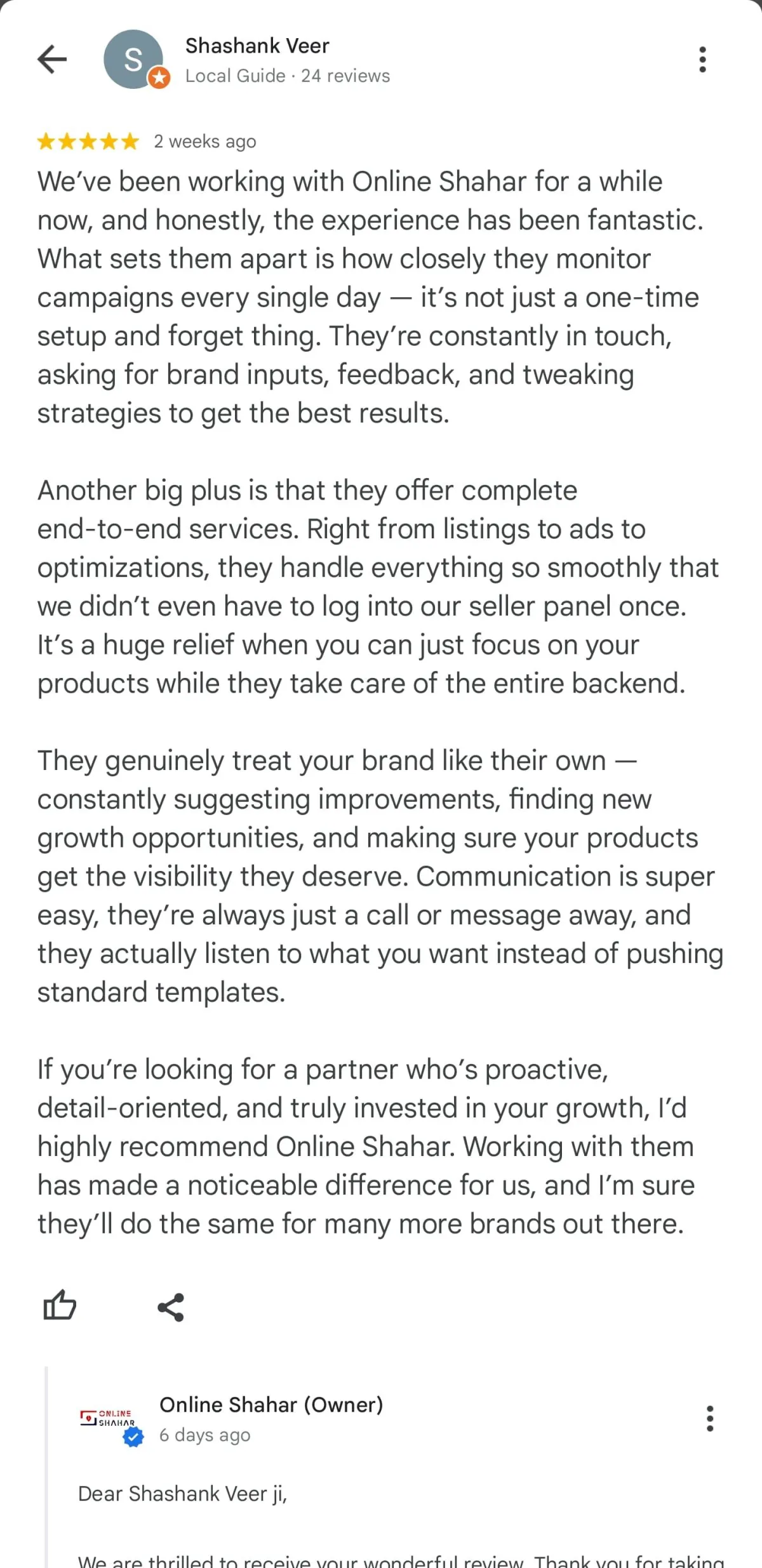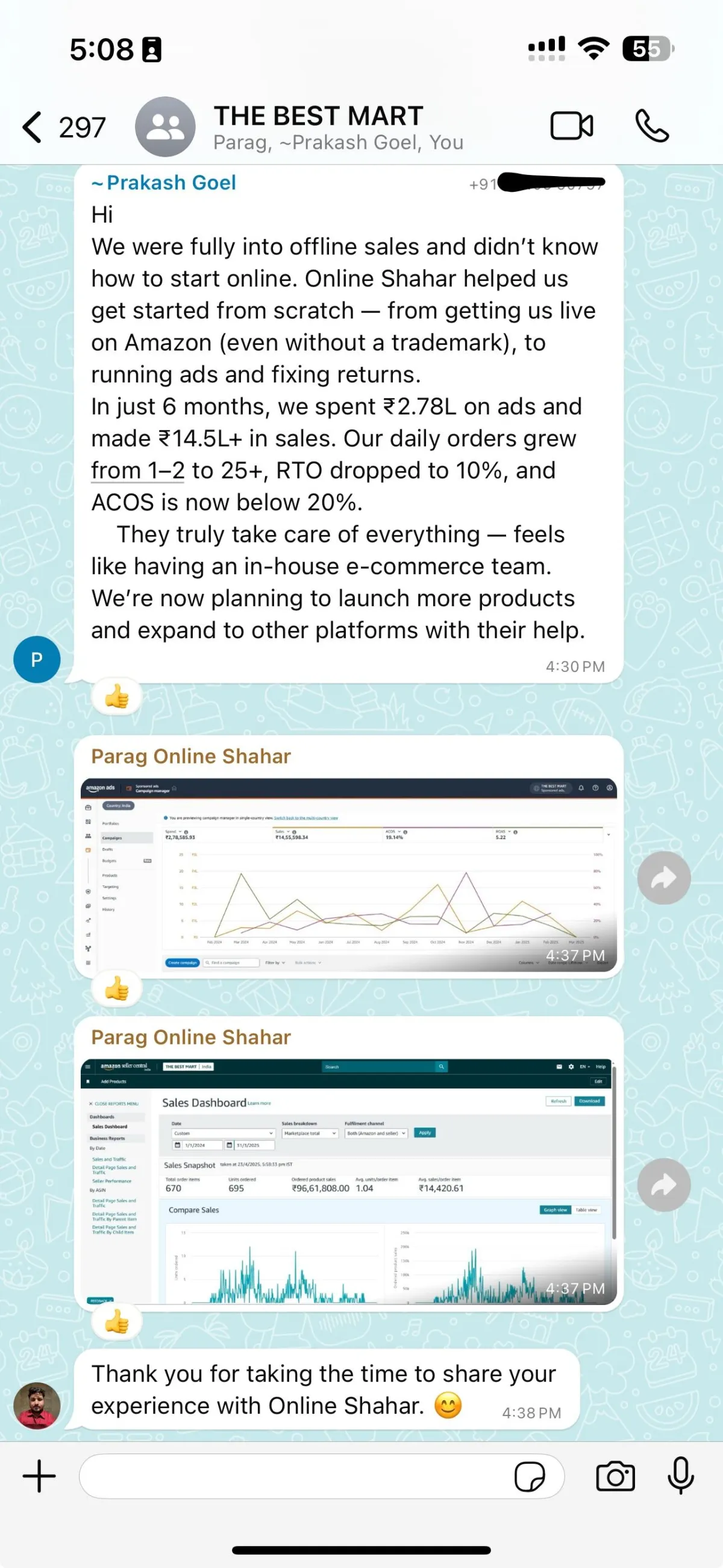 Started with zero online presence — fully offline business. Within 6 months, we helped them launch on Amazon (even without a trademark), manage ads, listings, operations and managed everything end-to-end.