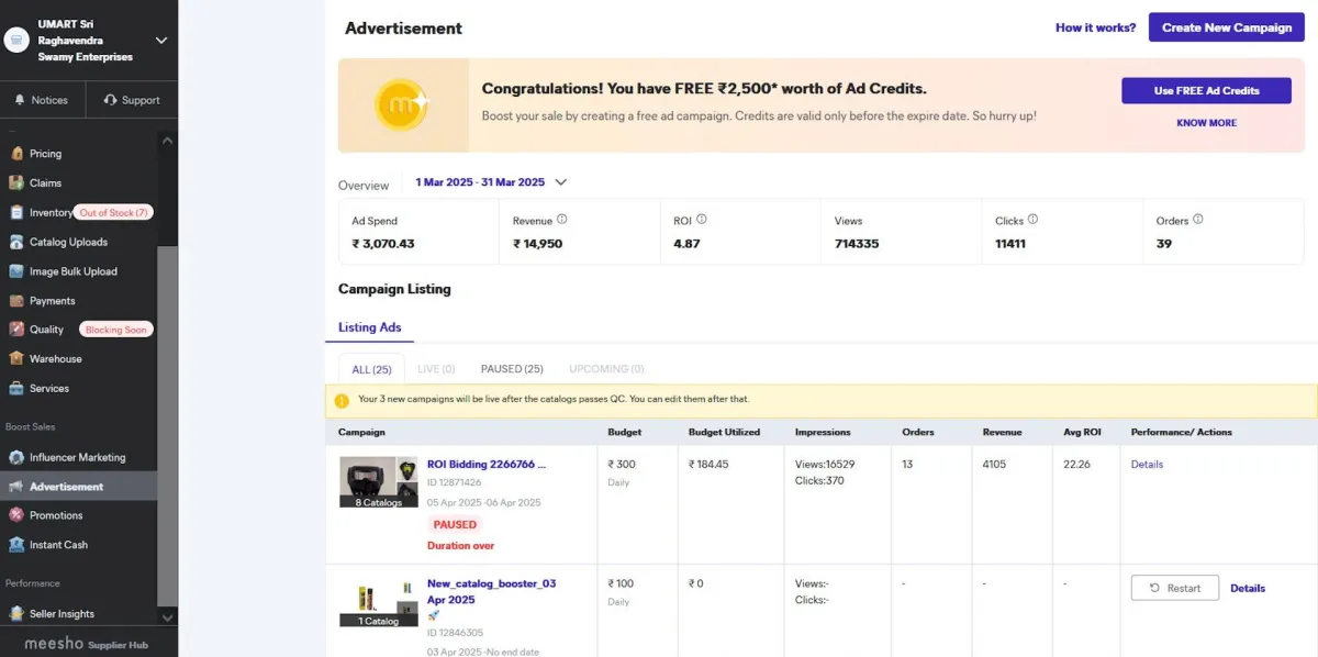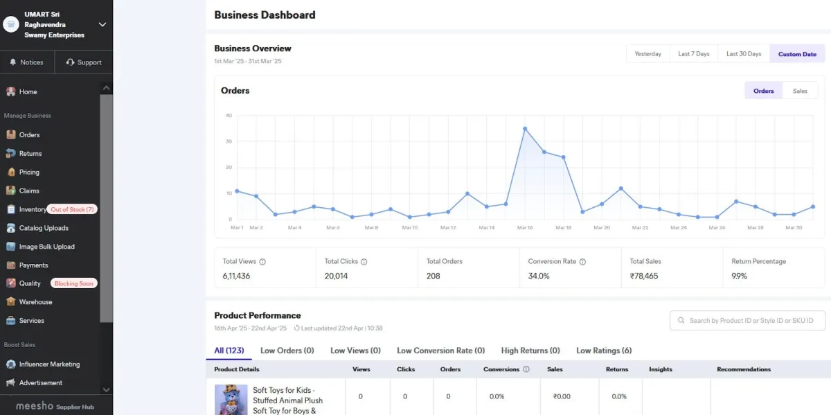 In 90 days, Mohan’s sales grew to ₹15 lakhs with just ₹2.5L ad spend, daily orders hit 30+, and ACOS dropped below 25%.